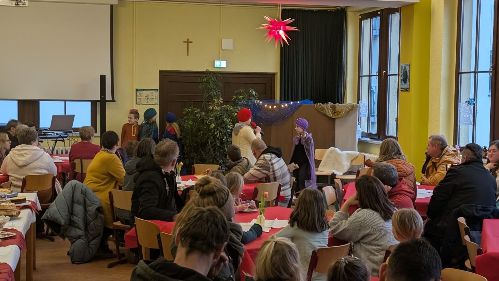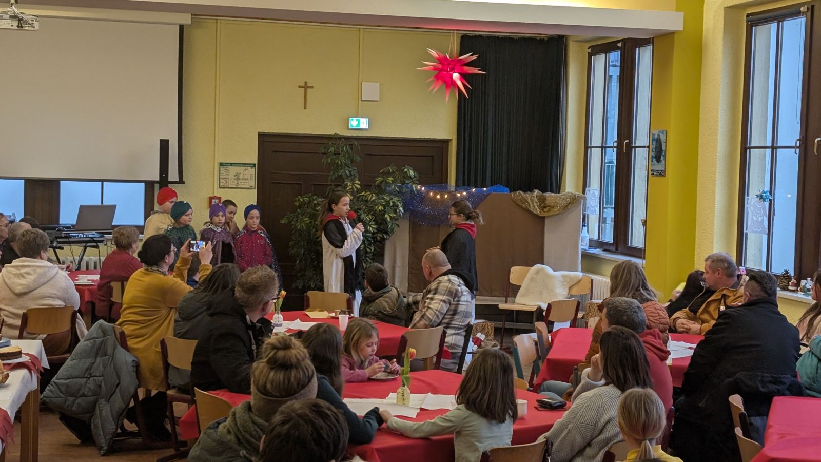 Herr Frahno hielt eine kurze Andacht und dann startete das Programm, das in diesem Jahr von den Schülern der Grundschule gestaltet wurde. Herzlichen Dank den kleinen Schauspielern und Tänzern und ihrer Lehrerin Frau Seiler.